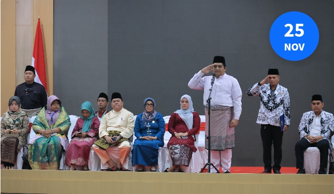 BINTAN, kupasfakta.com 25/11 – Pemerintah Kabupaten Bintan menggelar Upacara Peringatan HUT ke-80 Persatuan Guru Republik Indonesia (PGRI) dan Hari Guru Nasional Tahun 2025 di Aula Bandar Seri Bentan, Selasa (25/11). Upacara berlangsung khidmat dengan Bupati Bintan, Roby Kurniawan, bertindak sebagai pembina upacara dan didampingi Wakil Bupati Bintan, Deby Maryanti.
