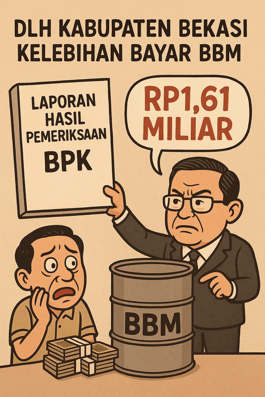 Kabupaten Bekasi, Kupasfakta.com– Laporan Hasil Pemeriksaan (LHP) BPK Tahun 2024 atas Laporan Realisasi Anggaran (LRA) Pemerintah Kabupaten Bekasi mengungkap adanya kelemahan serius dalam pengendalian Belanja Bahan Bakar Minyak (BBM) di Dinas Lingkungan Hidup (DLH). Ketidaktertiban dokumen, lemahnya pengawasan, hingga ketidaksesuaian data transaksi berujung pada temuan kelebihan pembayaran sebesar Rp1.614.502.463,99.