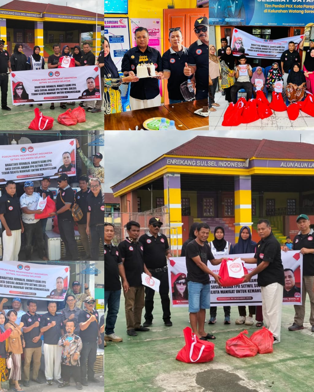 MAKASSAR Sulsel, Kupasfakta.com–Merayakan hari jadi yang ke-3, Forum Pers Independent Indonesia (FPII) Sekretariat Wilayah (Setwil) Sulawesi Selatan menggelar aksi kemanusiaan akbar. Dengan mengusung tema “Bhaktiku Jurnalis, Bakti Kami FPII: Aksi Sosial Akbar FPII Setwil Sulsel Tebar Sejuta Manfaat untuk Kemanusiaan”, organisasi ini membagikan paket sembako secara serentak di lima titik wilayah di Sulawesi Selatan.