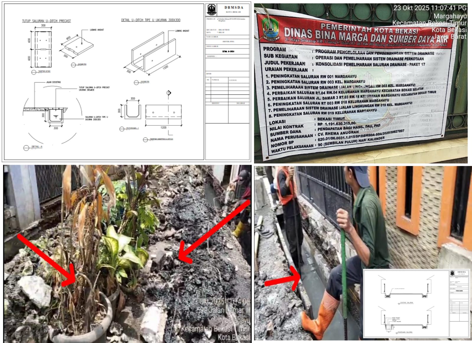 Proyek yang bersumber dari APBD Kota Bekasi Tahun Anggaran 2025 dengan nilai pagu Rp1.358.500.000 dan dikerjakan oleh CV. Rhema Anugrah, disebut-sebut tidak sesuai dengan Rencana Anggaran Biaya (RAB) dan gambar perencanaan.