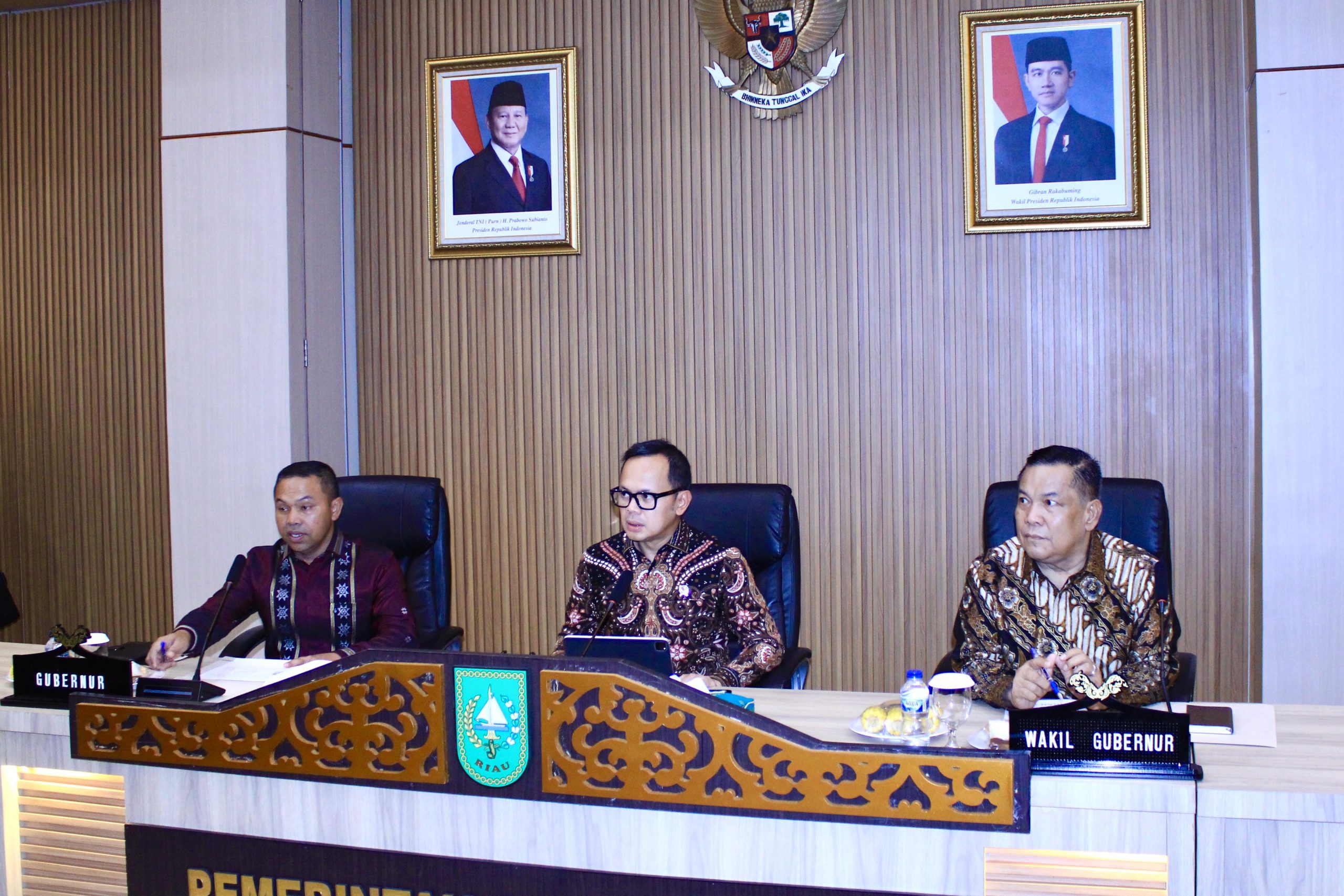 Pertemuan yang berlangsung di Ruang Melati Lantai 3 tersebut secara resmi dibuka oleh Gubernur Riau Abdul Wahid. Agenda utama rakor meliputi evaluasi pelaksanaan APBD 2025 serta strategi pengendalian inflasi di seluruh wilayah Provinsi Riau.